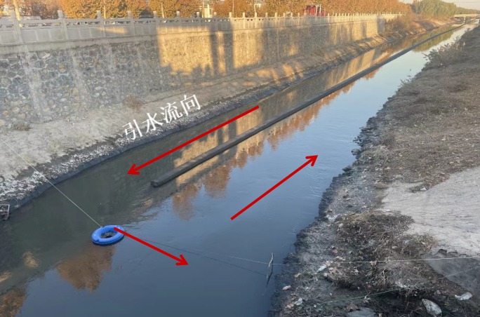 图3 2023年12月5日,督察组现场督察发现,南乐县永顺沟源头段建有隔堤,引水回流稀释河道受污染的河水