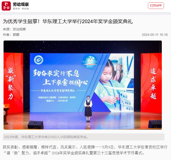 【劳动观察】为优秀学生鼓掌!华东理工大学举行2024年奖学金颁奖典礼
