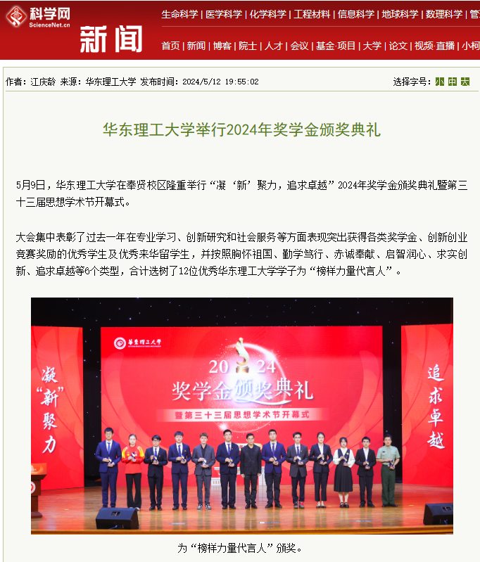 【科学网】华东理工大学举行2024年奖学金颁奖典礼