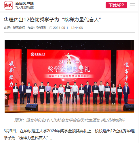 【新民客户端】华理选出12位优秀学子为“榜样力量代言人”