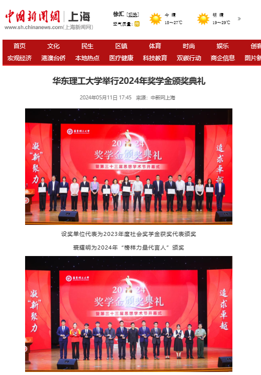 【中国新闻网】华东理工大学举行2024年奖学金颁奖典礼