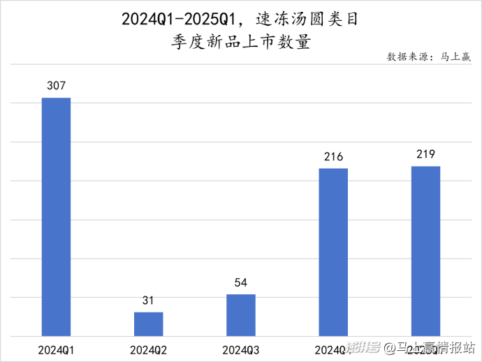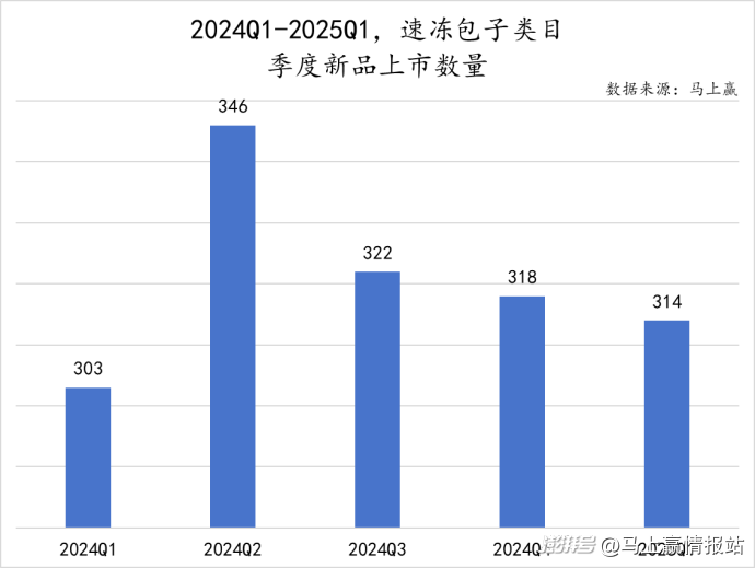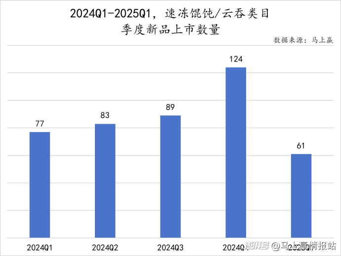 相较于其他速冻食品品类,速冻馄饨/云吞的新品上市数量明显偏少,只有2024年Q4超过100款,其余季度在60-90款波动,类目整体规模有限同时增长承压,都使得类目的新品创新意愿较为有限。