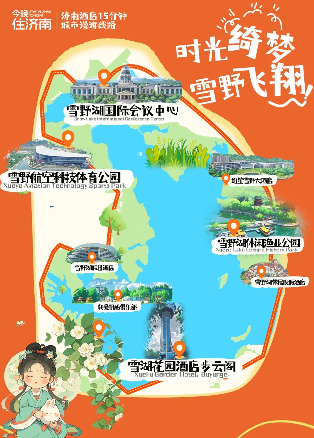 线路点位:雪野湖国际会议中心→雪野湖休闲渔业公园→雪湖花园酒店步云阁→我爱帆船俱乐部→雪野航空科技体育公园→雪野湖国际会议中心