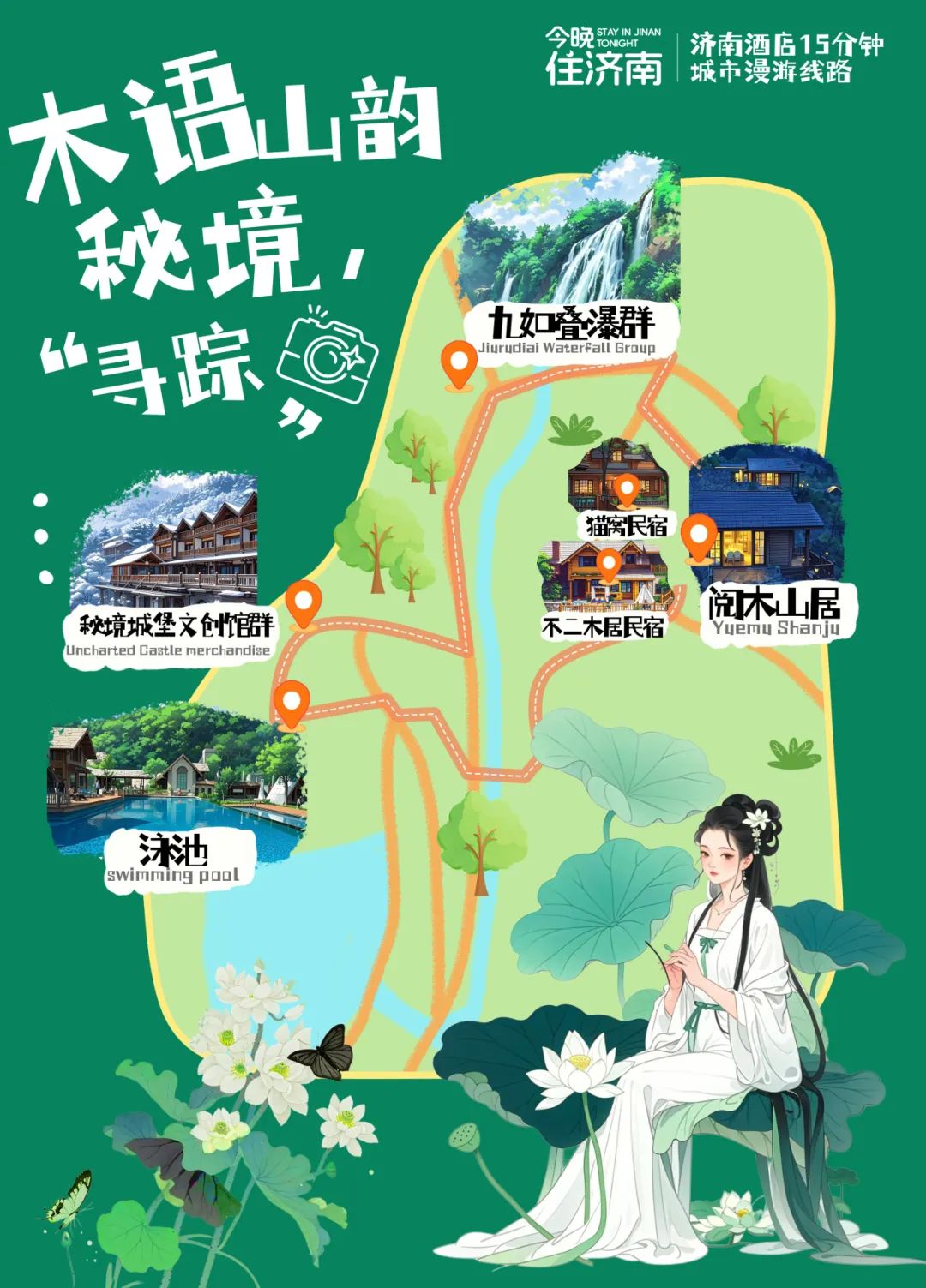 线路点位:阅木山居→九如叠瀑群→秘境城堡文创馆群→泳池→阅木山居
