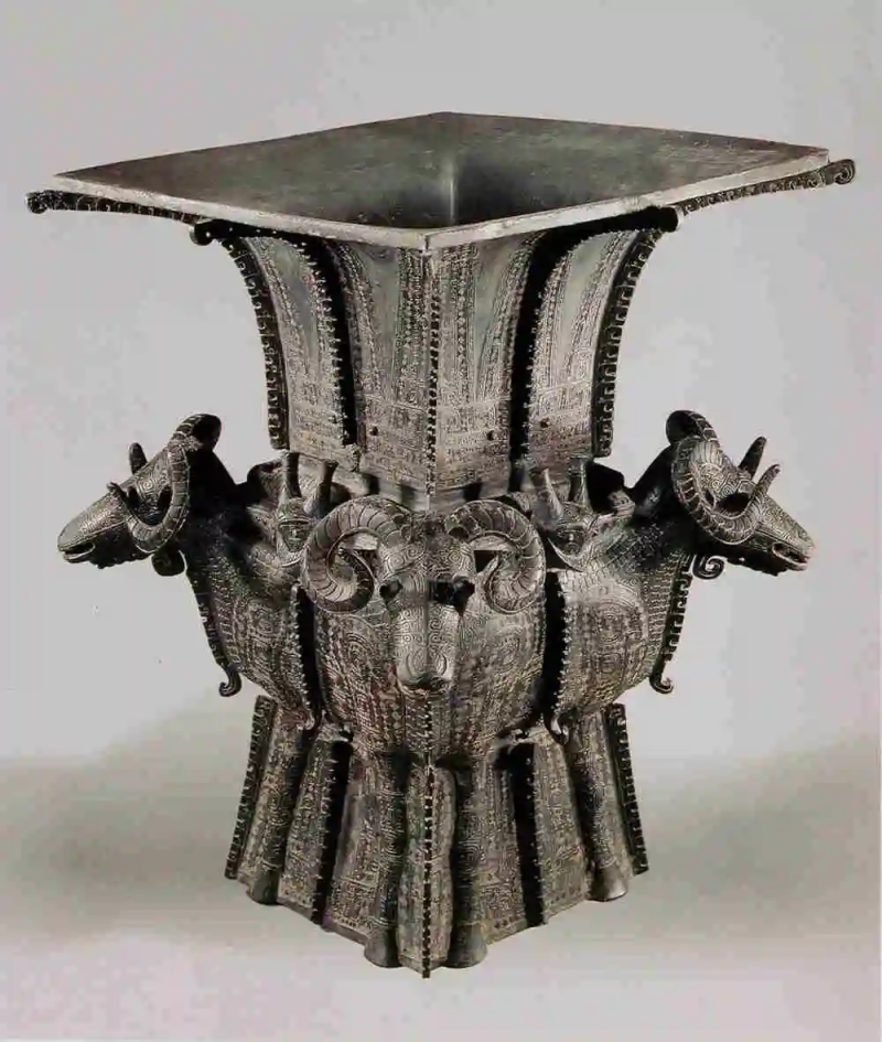 如何能体现商朝的统治范围在不断扩大呢?于湖南的宁乡县,也就是距离湖南省会长沙不远的一座县城境内,居然出土了国宝重器四羊方尊。这可是目前出土的青铜方尊中体量最大也是最精美的一件。它的制作时间,大约是在商代晚期。看来此重器所出土的地域,早已被商代的青铜文明所征服。这在商代前期,是不可能出现的事儿。