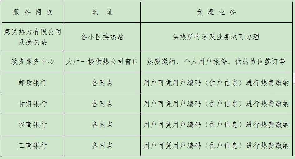 (3)用户编码是热用户唯一缴费编号,请各用户对用户缴费编码进行妥善保管记录;查询缴费编码方式如下:用户可来人来电到供热公司查询;可到各小区换热站查询;也可到政务服务中心一楼供热公司窗口查询。