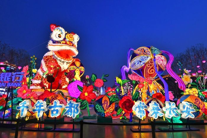 满城灯火璀璨夜 新春年至味愈浓 一盏灯点亮一座城,花灯作为重要的新春年节氛围元素,寄托着无数人对于年的记忆。 自2月4日晚迎祥纳福的小年夜起,西安推出新春灯会,大唐不夜城、大明宫国家遗址公园、西安城墙、大唐芙蓉园、昆明池等景区灯火璀璨,竞放光华,诠释浓郁的西安年味,成为市民群众就地过年的首选和热点。