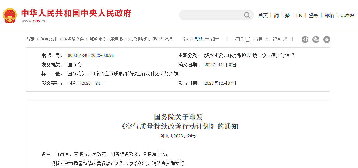 近日,搜狐商用车从国务院官网获悉,2023年12月7日,国务院发布关于印发《空气质量持续改善行动计划》的通知。通知提出,要落实全国生态环境保护大会部署,坚持稳中求进工作总基调,协同推进降碳、减污、扩绿、增长,以改善空气质量为核心,以减少重污染天气和解决人民群众身边的突出大气环境问题为重点,以降低细颗粒物(PM2.5)浓度为主线,大力推动氮氧化物和挥发性有机物(VOCs)减排。