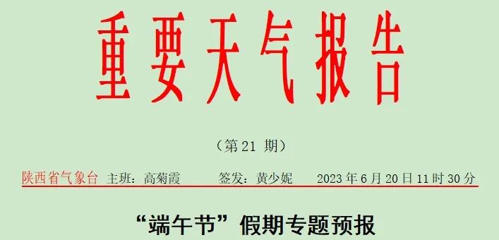 6月23日:全省晴天间多云。陕北、关中北部有4-5级偏南风,阵风可达6级以上。关中平原中东部及黄河沿线部分地方最高气温可达35℃以上,局地可达38℃以上。