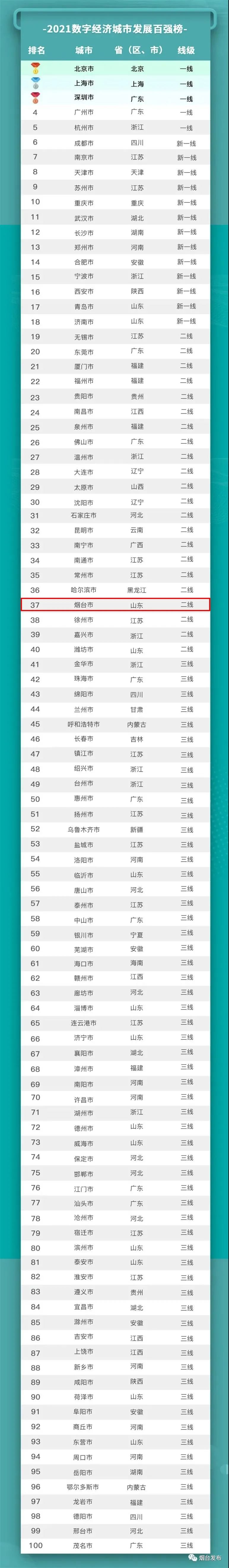 近日,赛迪顾问发布2021数字经济城市发展百强榜。赛迪顾问称,综合考虑各城市GDP水平及数字经济指数值情况,将数字经济百强城市划分为一线、新一线、二线、三线四个等级,其中山东省共13个城市入围,其中数字经济新一线城市为青岛市(17位)、济南市(18位);数字经济二线城市有两个,分别是烟台市(37位)、潍坊市(40位);数字经济三线城市9个,分别是临沂市(55位)、淄博市(64位)、济宁市(66位)、德州市(72位)、威海市(73位)、滨州市(80位)、泰安市(81位)、菏泽市(90位)、东营市(93位)。