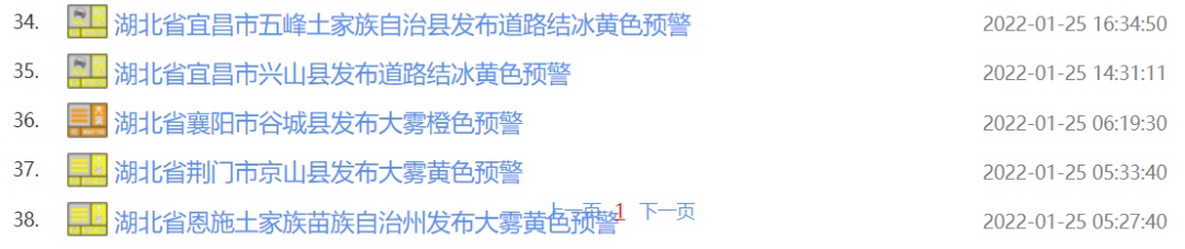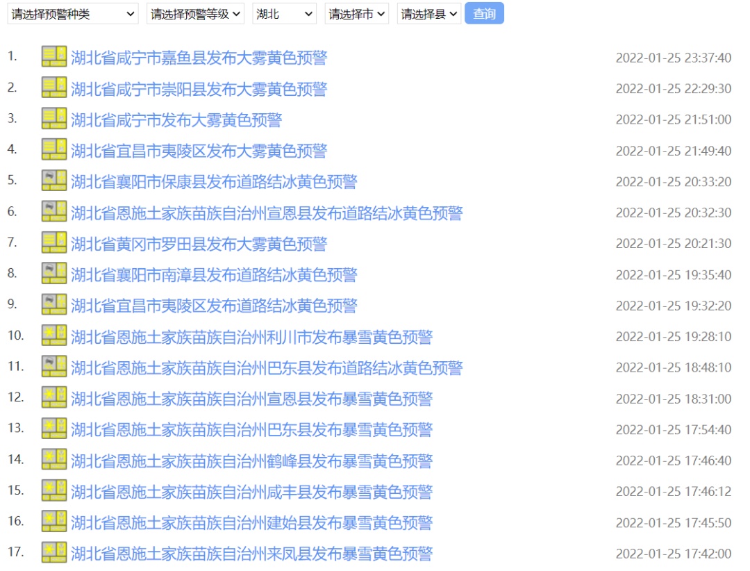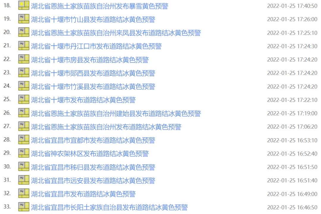 湖北气象官网连发38条预警信息