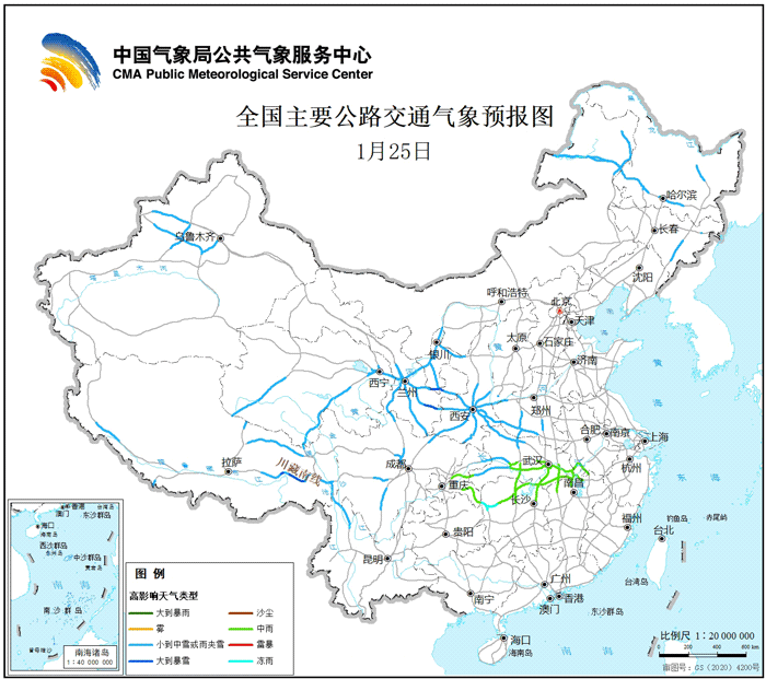 据全国主要公路交通气象预报显示