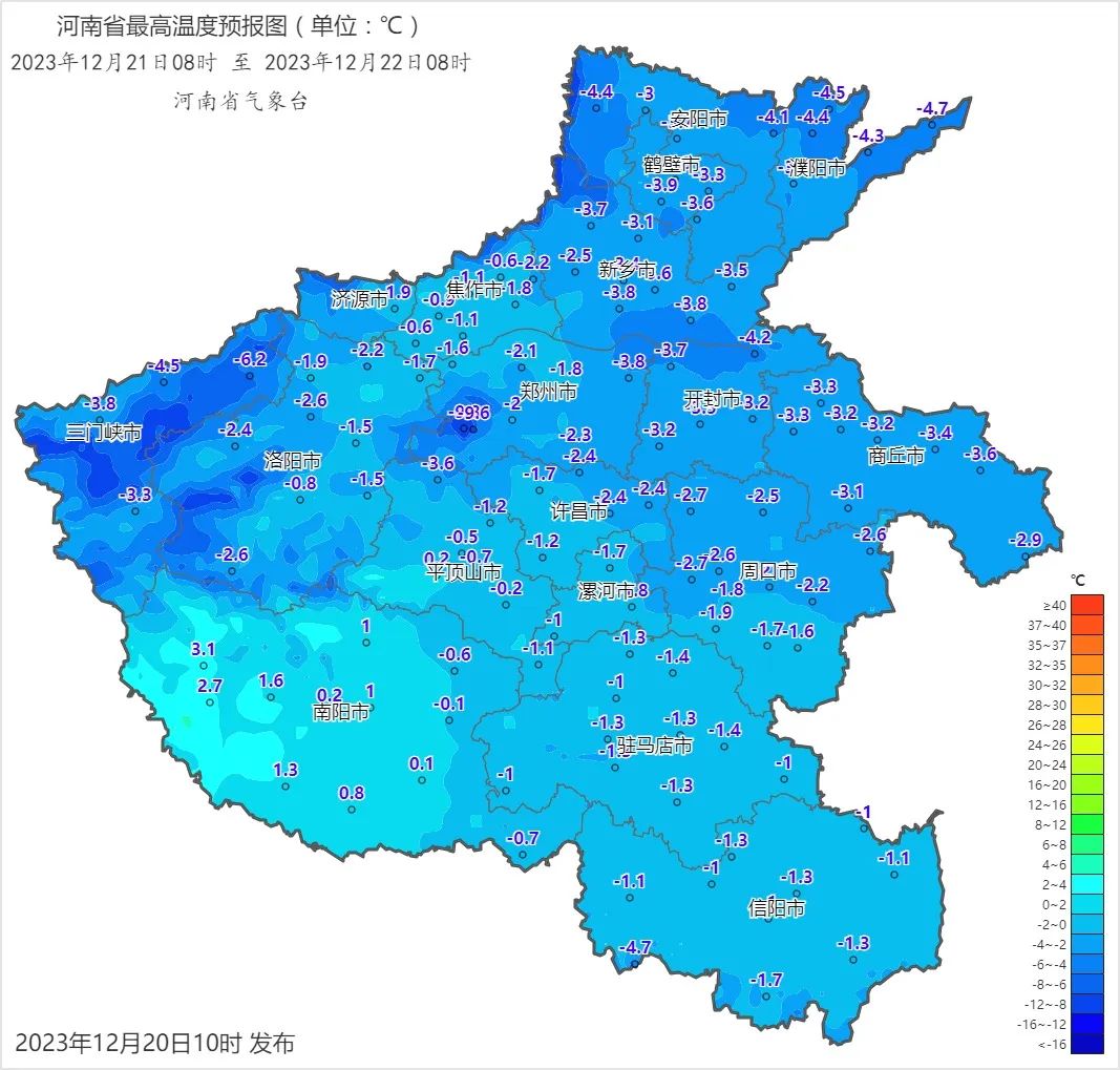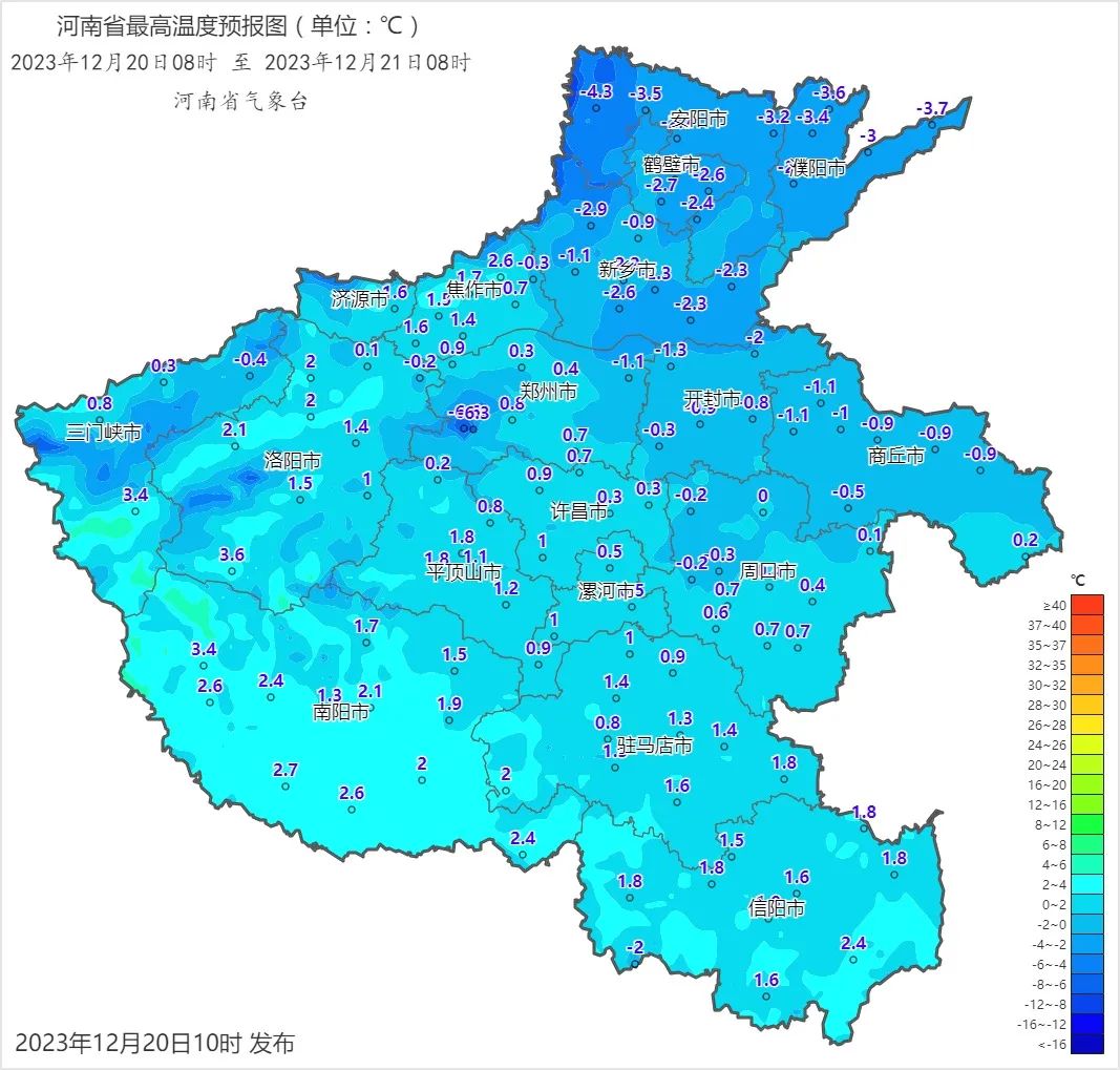 预计今天白天西部山区、北部最高温度-3℃~-1℃