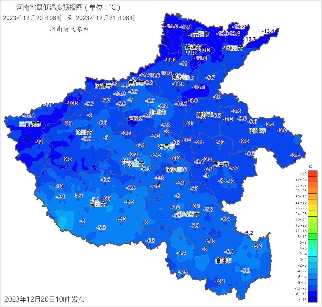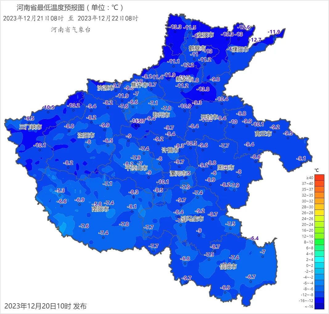 明天和22日凌晨最低气温西部、北部-15℃~-10℃