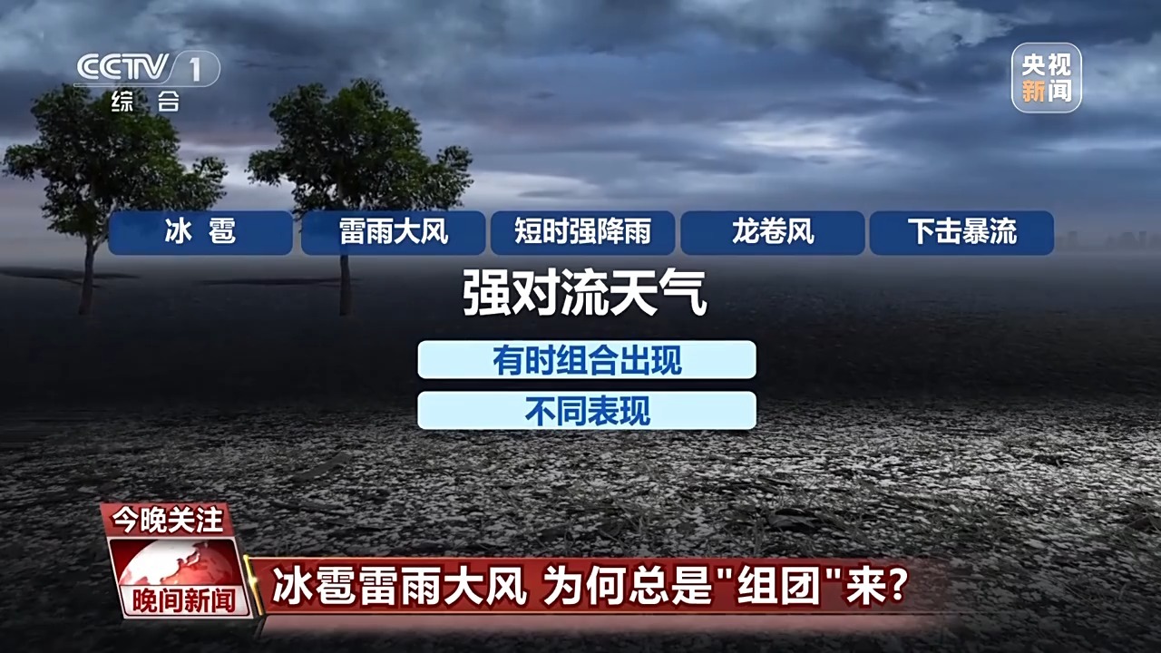 气象分析师 胡啸:这和强对流天气的特点密不可分,强对流天气属于中小尺度的天气系统,发展快变化多。这也属于天气预报中重要的分支。通常冰雹、雷雨大风、短时强降雨甚至龙卷风、下击暴流统称为强对流天气。有时候会组合出现,或者说这些都是强对流天气的不同表现。强对流天气都需要有不稳定的大气层结,低层暖湿、高层干冷,“上冷下暖”垂直结构;还有一定的水汽和抬升触发机制:比如冷空气、地形抬升等。雷雨大风和冰雹,都是在底层水汽条件不太充沛的时候,有时候会相伴出现。5月份、6月份是包括北京在内华北地区的干热季节,所以会相对多发。