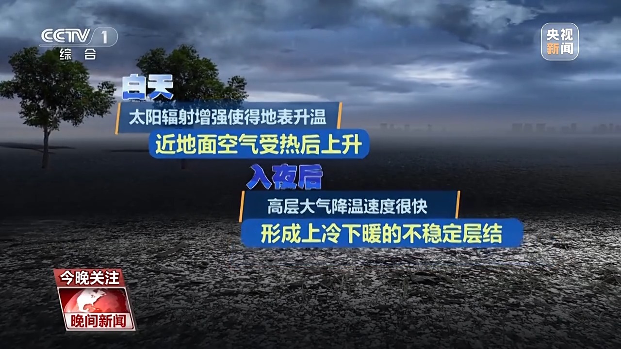 胡啸:说到冰雹,这和对流天气日变化密不可分,白天太阳辐射增强使得地表升温,近地面空气受热后上升。入夜后,高层大气降温速度很快,就会形成上冷下暖的不稳定层结。这样垂直上的温差会加剧上升气流,会使上升气流发展得更旺盛,也有利于冰雹在夜间出现。