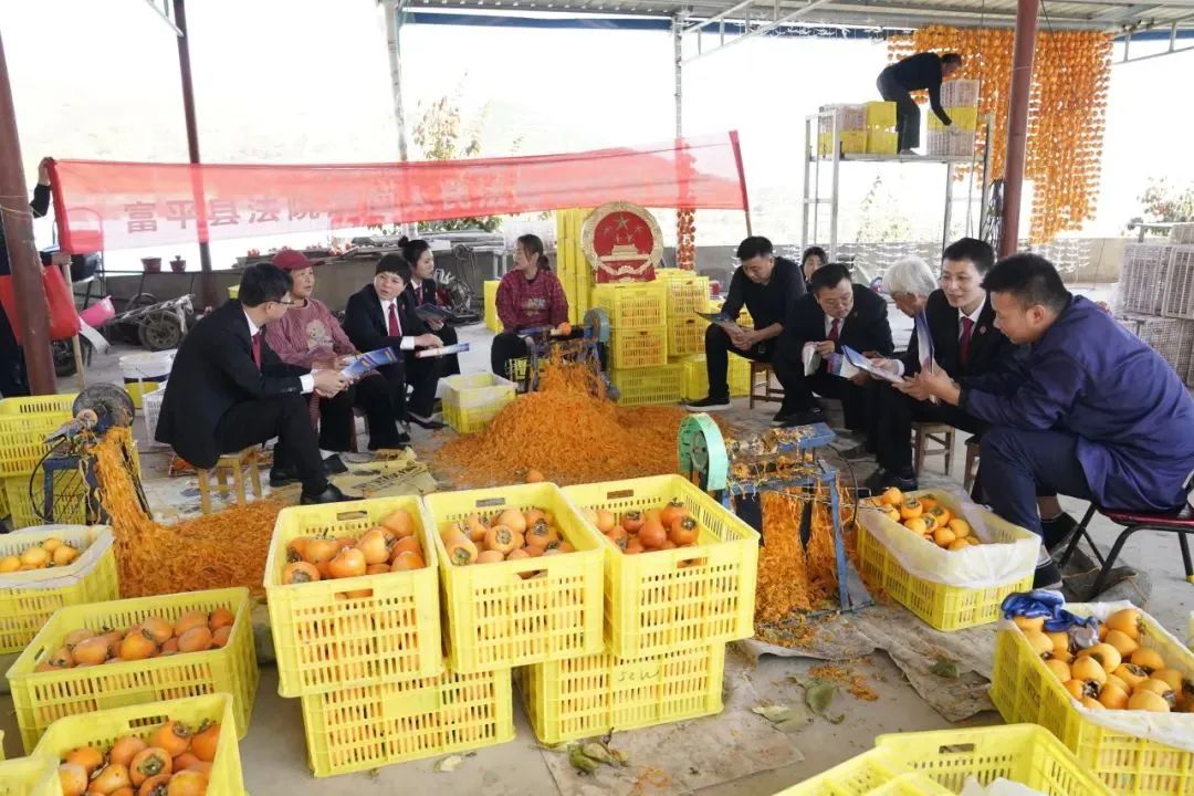 柿子栽植和柿饼加工产业是富平县的主导农业产业,每逢柿饼加工时节,富平县法院法官干警主动走进基层,围绕柿子收购、柿饼销售等环节及时向企业和农户普法宣传,及时调解柿农与客商之间的矛盾纠纷,助力全县柿子产业健康发展。近年来,富平县法院坚持“将非诉讼纠纷解决机制挺在前面”,积极践行新时代“枫桥经验”,深入推进诉源治理工作,把基层矛盾纠纷更多地化解在萌芽状态、止于了诉讼前端。