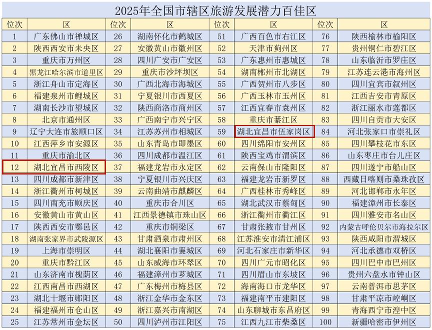 日前,《全国市辖区旅游研究报告2025》暨“2025年全国市辖区旅游综合实力百强区”“2025年全国市辖区旅游发展潜力百佳区”名单正式发布。