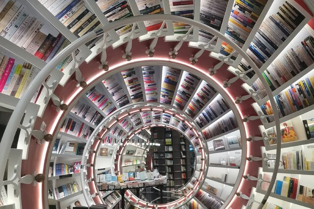 位于成都猛追湾的几何书店是一个包涵人文、创意的慢生活的文化大型复合式书店,凭借其标志性的洞穴设计以及那条贯通上下三层的旋转楼梯成为一众文青追捧的网红书店。几何书店猛追湾店深度融合成都本土文化,豪迈大气的雪域文化与闲适慵懒的巴蜀文化有机结合,造就了这个书店独特的气韵——豪爽不粗犷、热烈又温润。几何书店还有一个独特的“九层妖塔”三层塔型建筑,沿着蜿蜒的旋转楼梯拾级而上,仿佛穿越过繁杂的生活,抵达最真实的内心深处。
