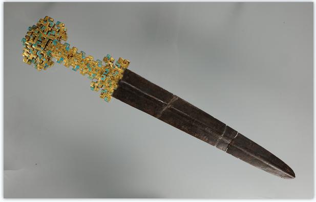 春秋 金柄蟠虺纹镶嵌绿松石铁剑 宝鸡市考古研究所藏