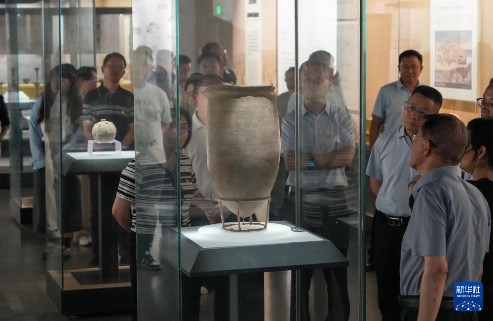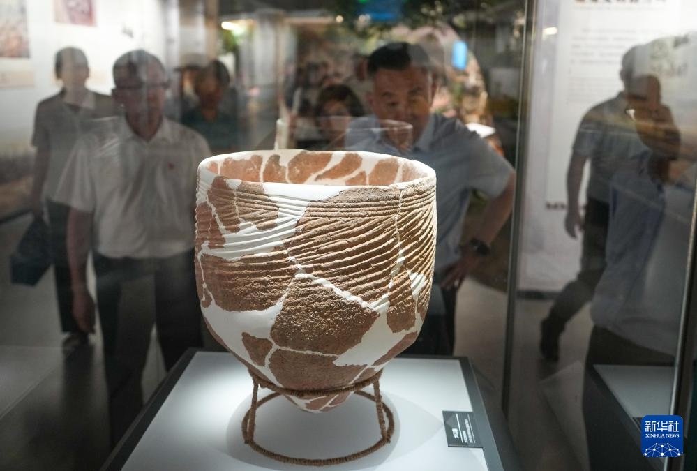 这是5月20日在大汶口遗址博物馆拍摄的刻花陶罐。
