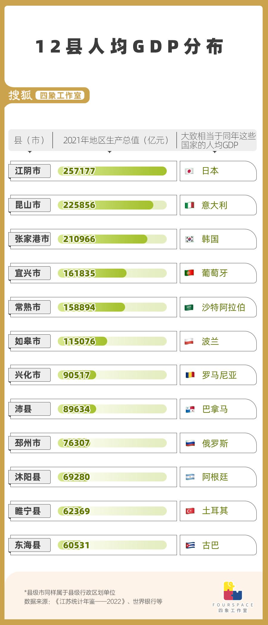 例如,江阴、昆山和张家港2021年的人均GDP均超过20万元,这个数字不仅比省会南京(17.45万元)高,也比首都北京(18.4万元)要高。
