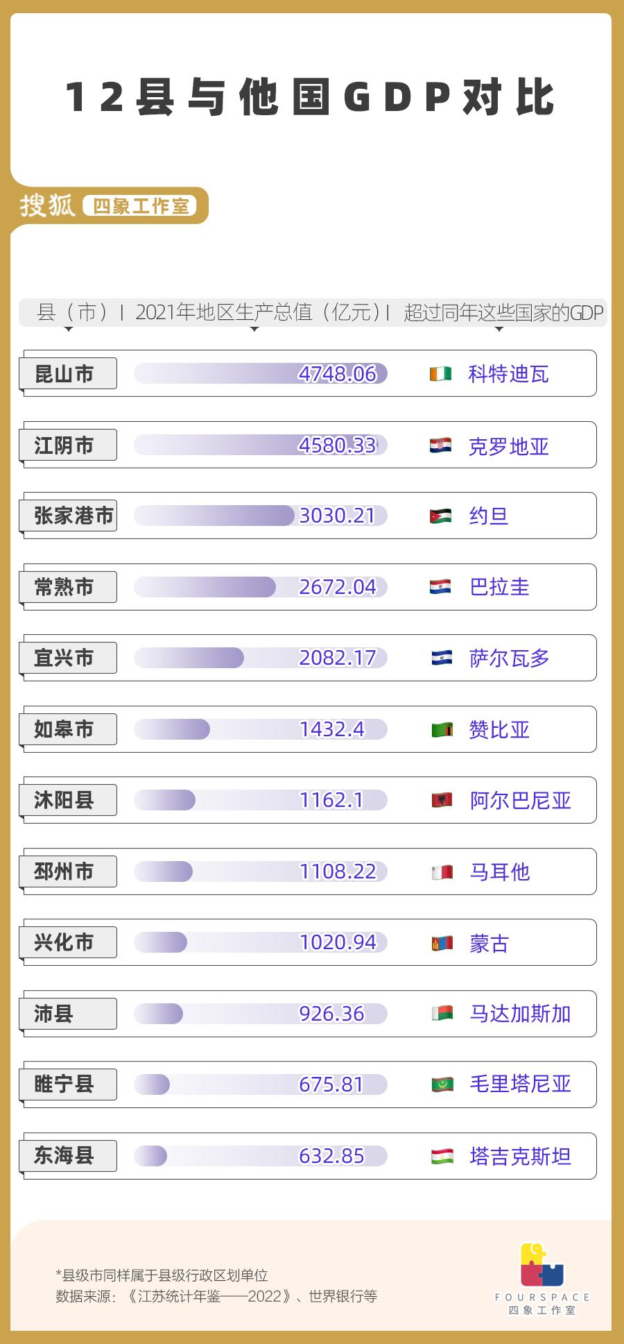 以昆山为例,这个素有“中国最强县”之称的地方,2021年的GDP已达到4700亿元,超过同年的科特迪瓦、乌兹别克斯坦、克罗地亚等国,甚至逼近卢森堡。