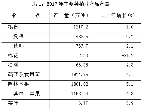 据抽样调查,全年粮食作物播种面积3045.3千公顷,比上年下降0.8%。其中,夏粮1199.3千公顷,下降1.8%;秋粮1846.0千公顷,下降0.1%。