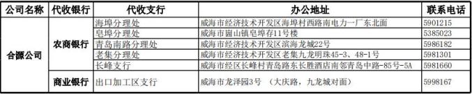 注:中信银行仅限于热电集团新力分公司和文登公司辖区用户。