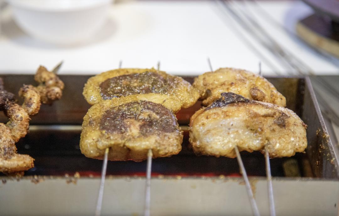 进阶食家可以挑战羊腰子、羊球、羊眼,滋味口感独有一种野意。每家烧烤店还会有特色调配的甜醋,根据个人喜好搭配肉串或臭干,又是另一番风味。