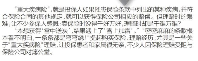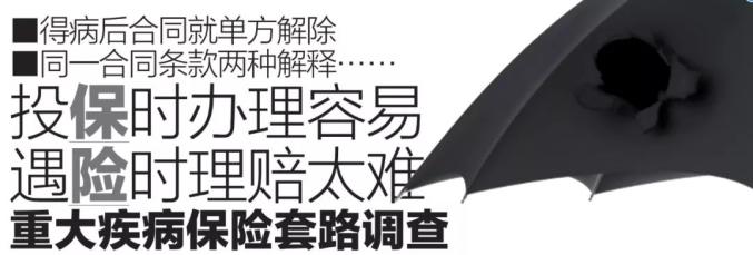 ▪华商报近日持续关注保险合同重疾险理赔难一事,随着线索征集,一大批五花八门的拒赔理由浮出水面,有保险公司工作人员冒充医生劝投保人退保,也有保险公司以支架放少了为由拒赔……你遭遇过哪些保险陷阱?你是否有过保险拒赔的经历?华商报继续征集保险维权案例,也欢迎对此有研究的专业人士、公益律师参与进来,共同推进保险行业更加规范和健康发展。华商报新闻热线:029-88880000