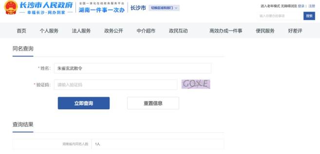 湖南省重名查询系统检索发现