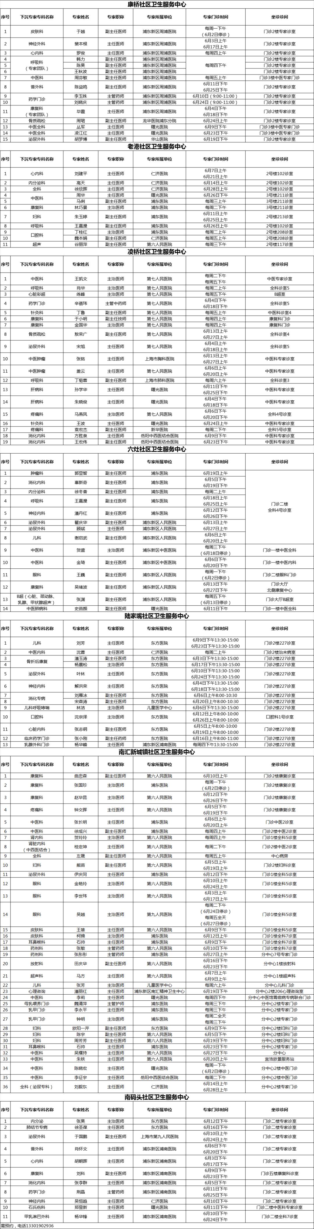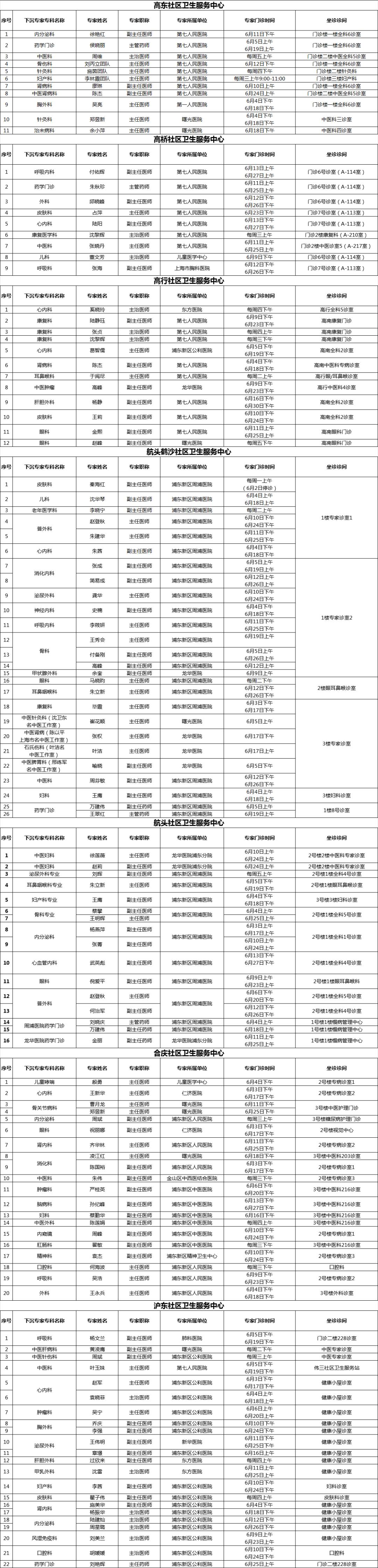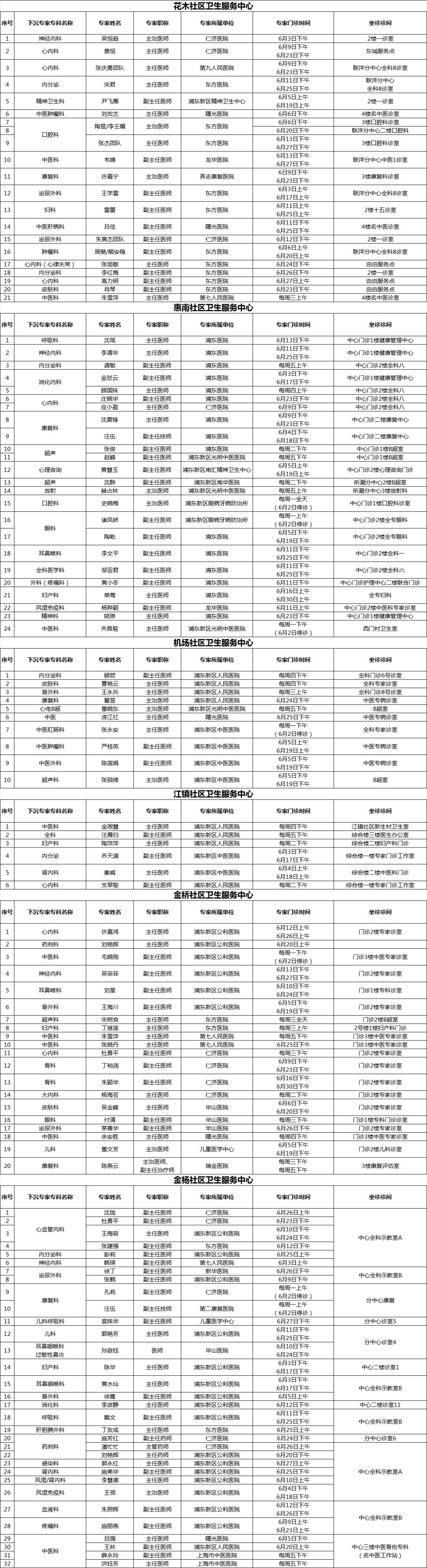 浦东新区持续推进社区卫生服务提质增能,加强分级诊疗。在有关市级医院、区属医院的大力支持下,浦东新区各社区卫生服务中心结合社区实际需求,开设上级医院“专家进社区”门诊,持续为辖区居民提供“家门口”的适宜专科服务。2025年6月专家门诊时间可参见下表: