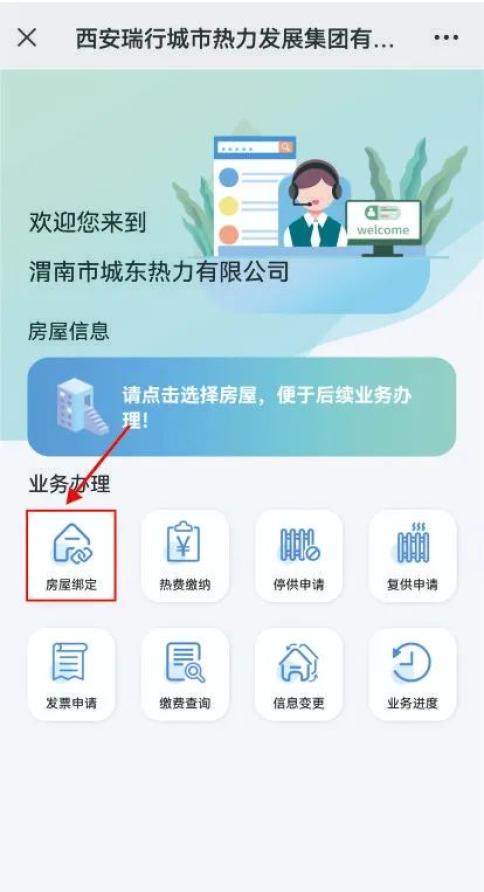 ③点击“房屋绑定”输入小区名称、选择房号进行房屋绑定。