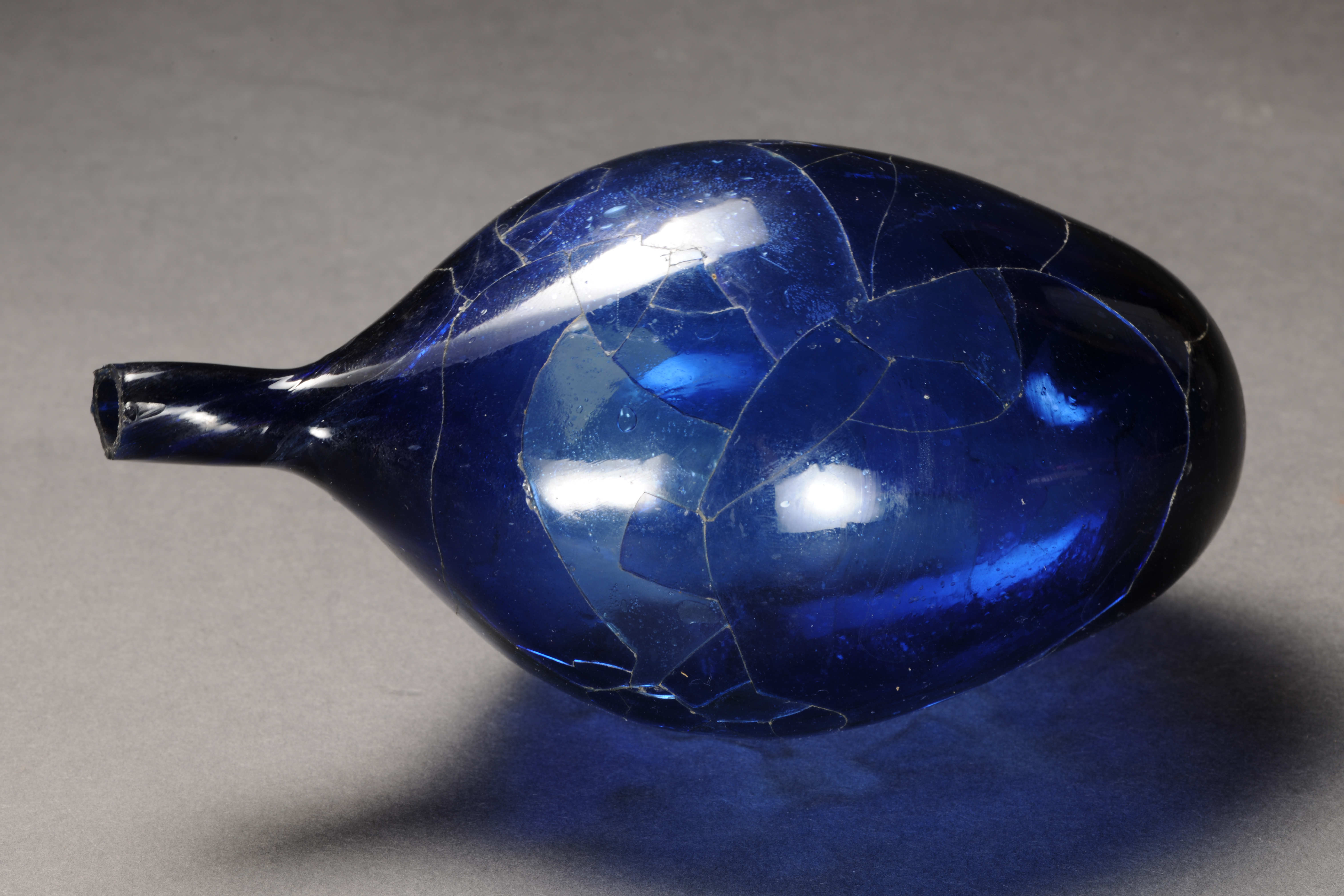 素面圜底细颈蓝琉璃瓶。
