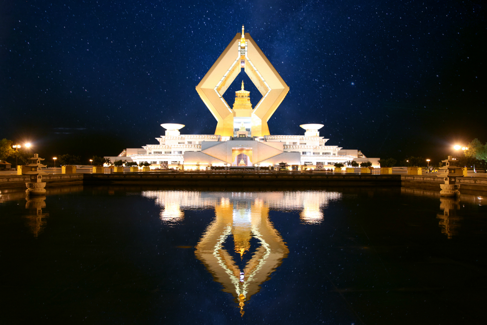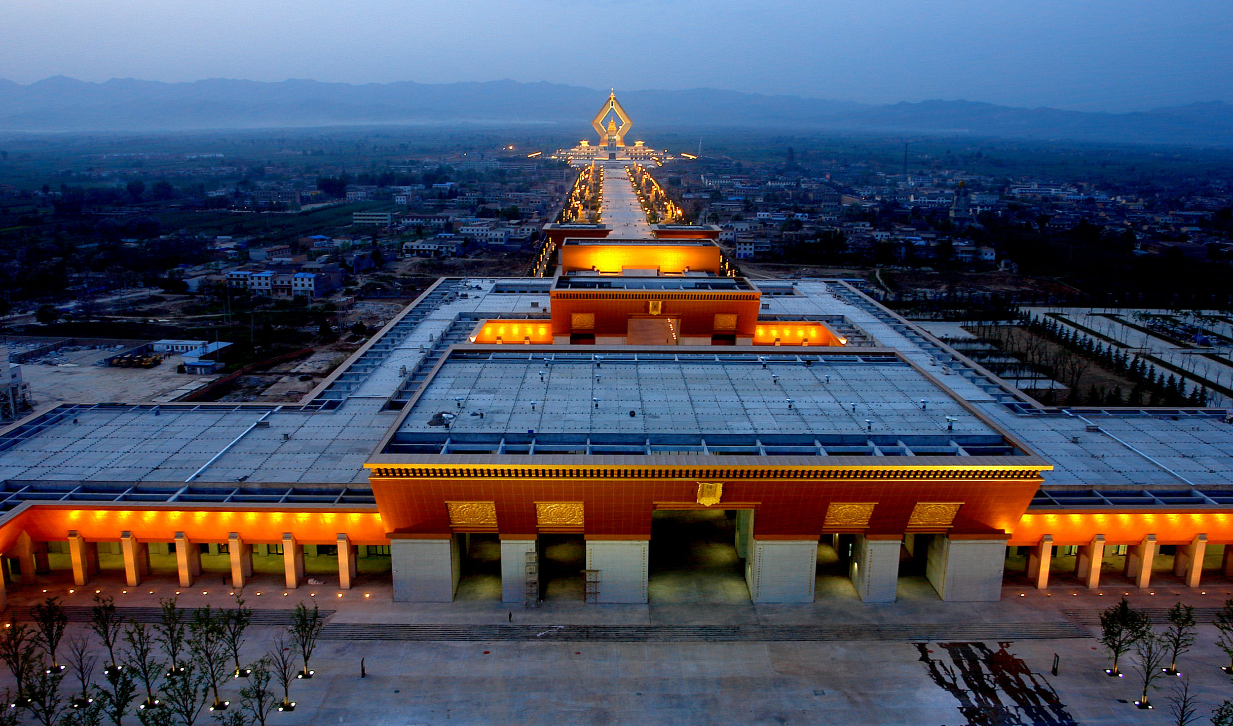 灯光璀璨的法门文化景区。