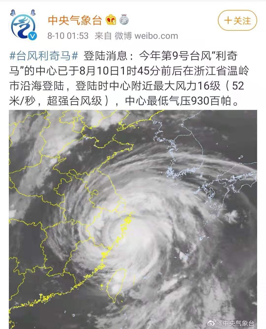 超强台风“利奇马”登陆浙江温岭
