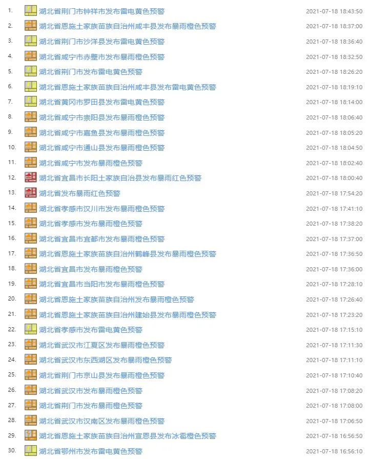 7月18日15时24分,宜昌市气象台发布雷电黄色预警信号:预计未来6小时,宜昌城区及周边将有雷电活动,局部雨量30-50毫米,阵风6-8级,请注意防范!