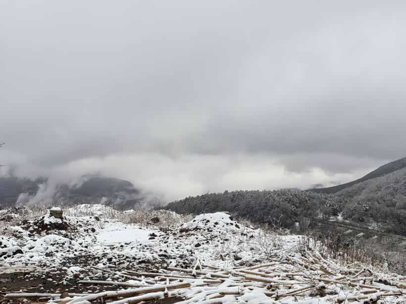 走214国道,从大理前往丽江古城。这次在大理古城的民宿很好很温馨,看到丽江也有抖音团购,每晚100元,宣传很好,定了一间一晚。出了丽江,国道顺着山往上爬,快到山顶,迎面来的车吓人一跳,满车身厚厚的一层积雪,什么情况啊,快到山顶,迎面的大雾铺天盖地而来,瞬间龟速行驶,可见路边山上的积雪,看来是山里下大雪了。三月的云南、大雪!确实是大雪,温度在零度左右。