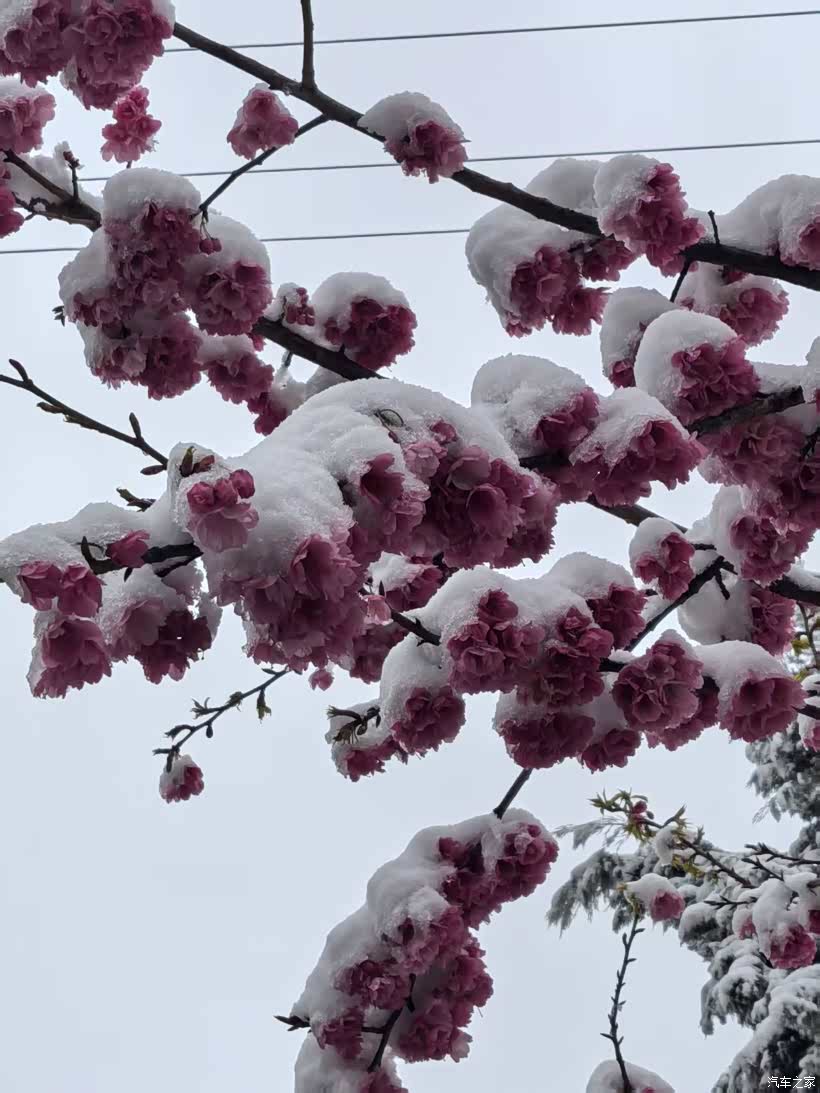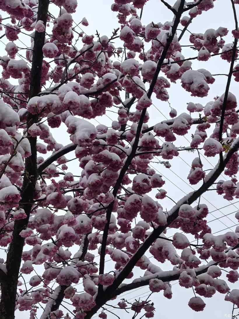 快到鹤庆的一个小镇上,路边的樱花树落满了雪