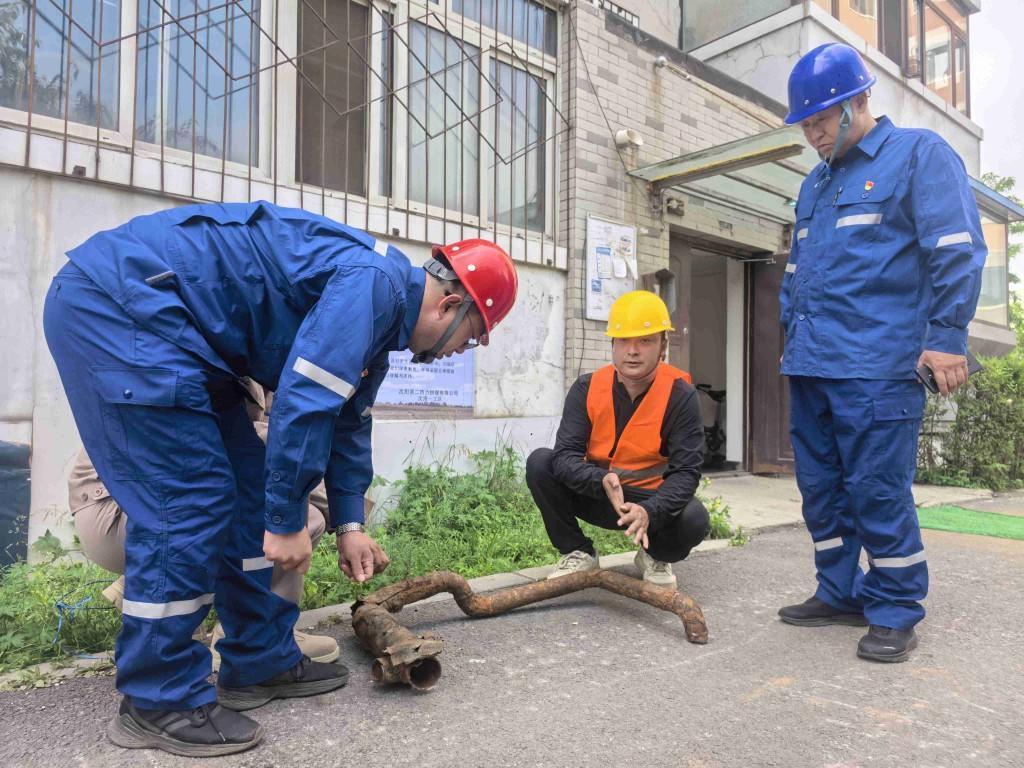 6月25日11时,大东区北海警官之家小区地表温度突破40℃。惠天热电沈海一工区主任唐恩全的防护服已浸透成深蓝色,他正带人更换单元楼门口最后一截锈蚀立杠。“这是2000年建成的铁管,没保温层、锈穿了7处,去年让17户居民室温低了3℃。”随手轻轻一刮,外皮剥落后露出蜂窝状管壁,渗漏痕迹清晰可见。