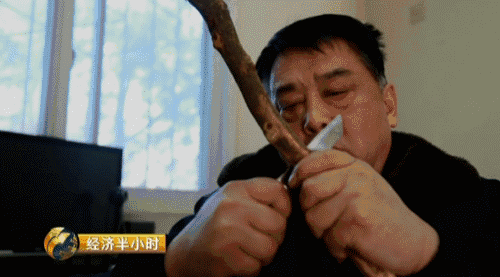 陕西省西安铁路局宝鸡车务段七里坪车站值班员马耀成:这是在山里头找了个枣木,做个拐杖。我有痛风,老是脚疼,在线路上中休的时候,上山找了个棍儿,还有几年就退休了,先提前做个拐杖。