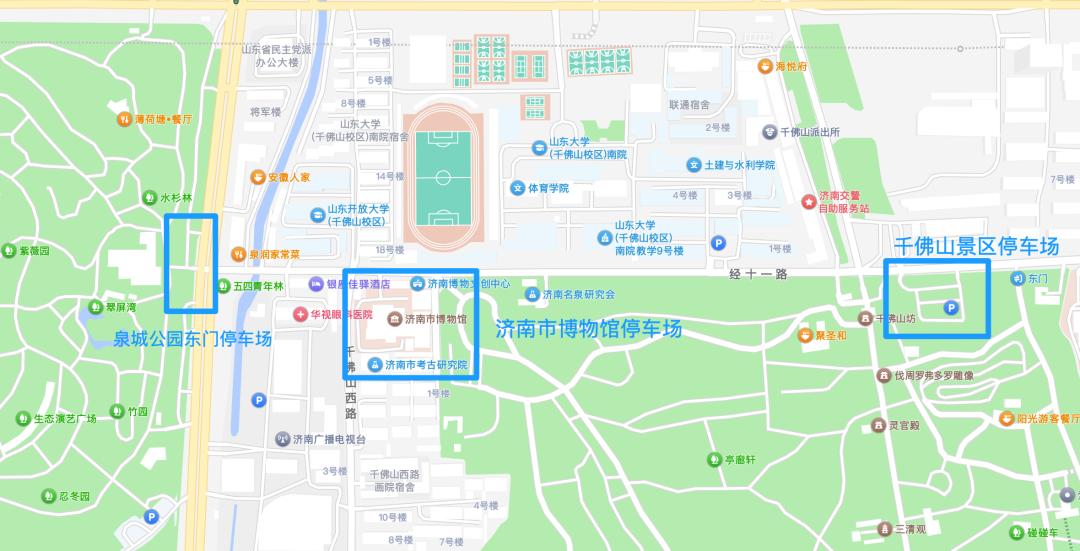 自驾:导航至“济南市博物馆”“千佛山停车场”或“泉城公园东门停车场”。博物馆附近停车位较为紧张,建议乘坐公共交通出行。