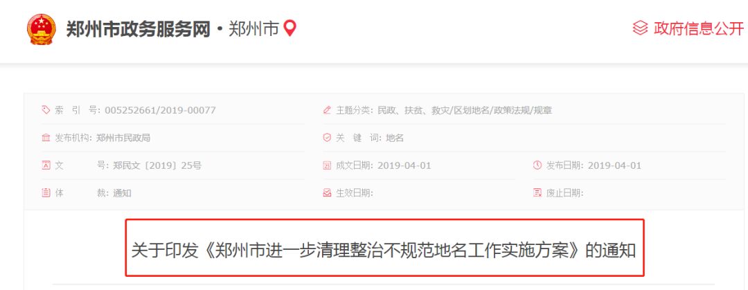 《郑州市进一步清理整治不规范地名工作实施方案》的通知,(以下简称通知)