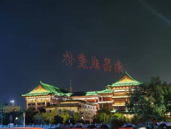 回地铁站时经过南昌图书馆,正好在放烟花,烟花汇聚成 南昌我爱你 几个字。