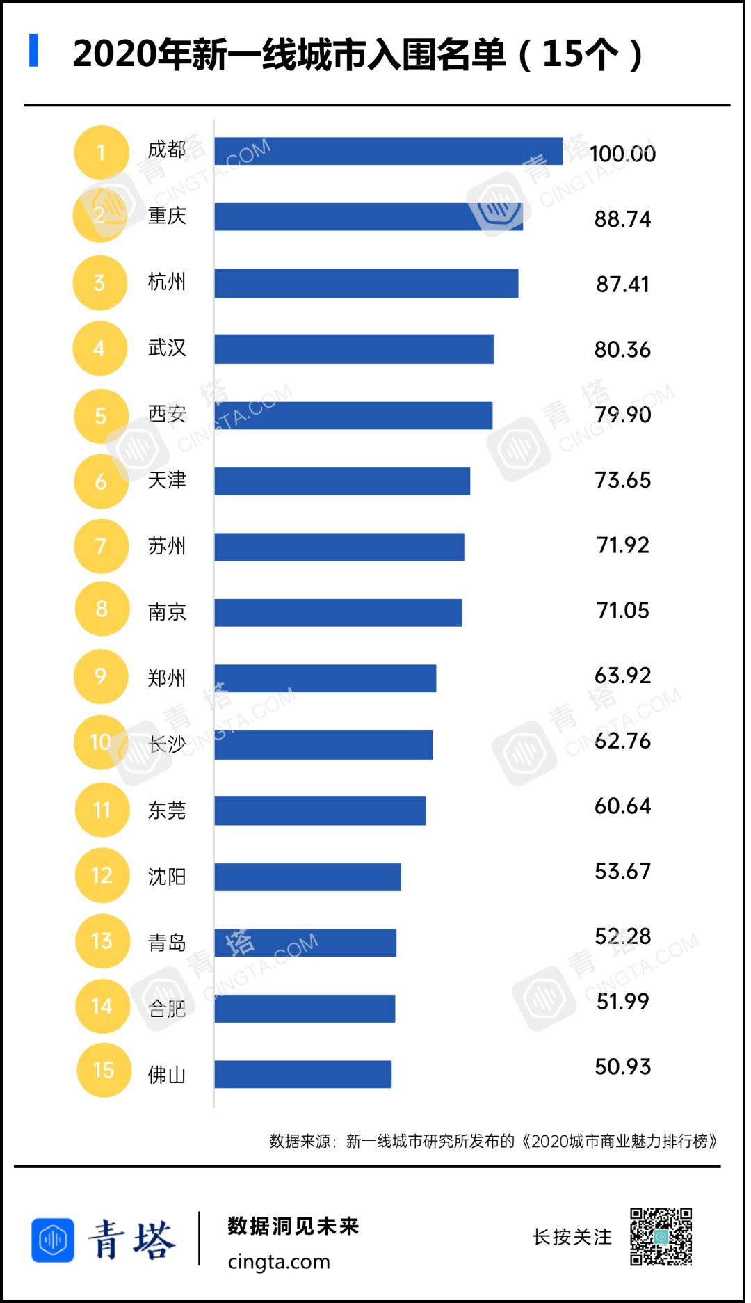在四大一线城市之外,15座城市入围新一线城市榜单,他们有的经济发展水平非常突出,有的科技创新能力异常强大,有的城市地位无与伦比。未来,它们将是潜在的一线城市。