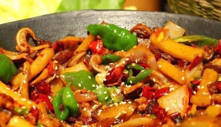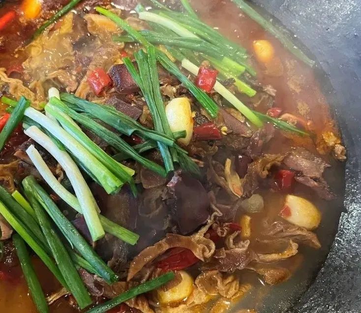 以辣为主,先将基础食材以小火炖煮出香味,再加入猪肉、核桃肉、猪肚等肉类,让三下锅凸显风味。