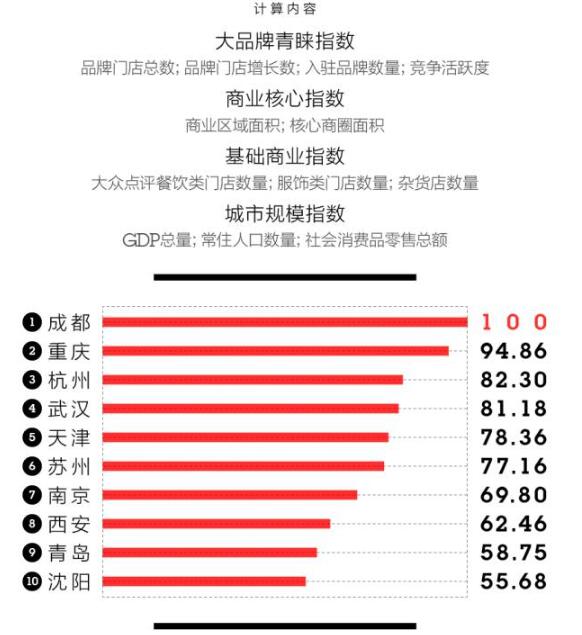 【排名依据】最新一年的160个品牌商业数据,17家互联网公司的用户行为数据和数据机构的城市大数据。