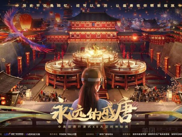 永远的盛唐沉浸式XR体验馆:为国内首个中英双语XR大空间国风题材,完美的展现了盛唐时期的繁荣景象和利用技术修复的全彩龙门石窟数字复原展现,沉浸式交互体验带你穿越古都洛阳。