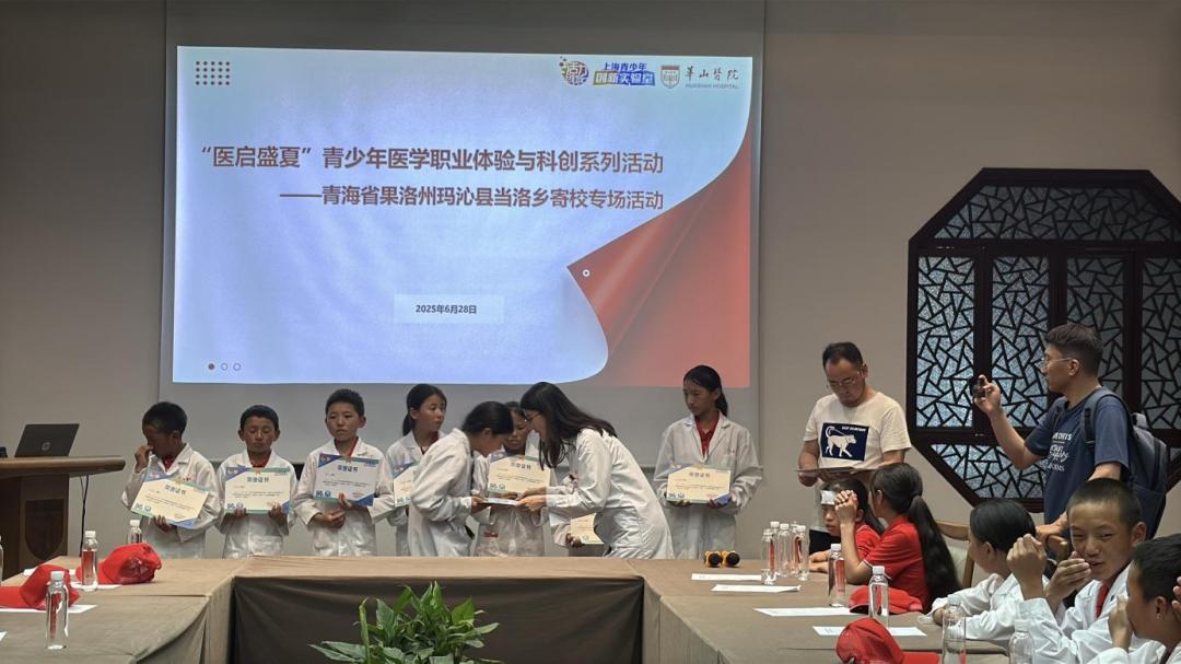 华山医院科普创新实验室活动通过沉浸式医学职业体验与科创实践,为高原学子搭建了一扇触摸医学魅力、感悟科学精神的窗口。活动受到了广泛关注,包括上观新闻、青春果洛等多家媒体对活动进行报道。活动由华山医院团委专职副书记吴文斐主持。